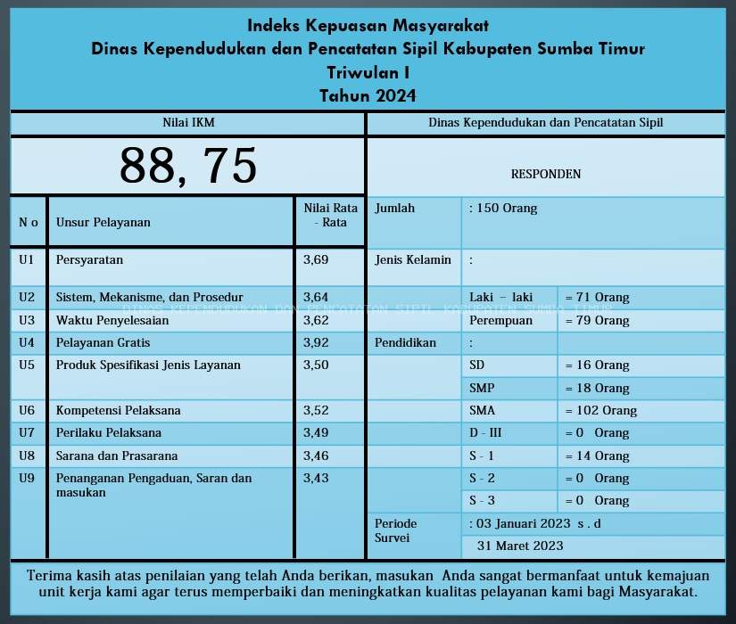 INDEKS KEPUASAN MASYARAKAT TRIWULAN I TAHUN 2024